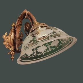 Светильник настенный из бронзы с плафоном из прозрачного стекла с матовой окантовкой и растительным узором. Первая половина ХХ века. Италия