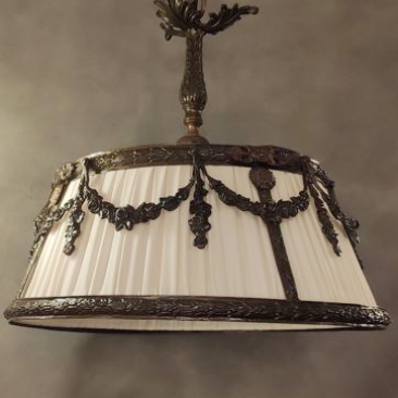Светильник подвесной из лакированной бронзы с шёлковым абажуром. 40-е годы ХХ века. Италия