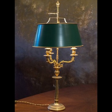 Антикварная настольная лампа с темно-зеленым металлическим абажуром. Высоту абажура можно регулировать. Предмет интерьера на 3 светоточки из Западной Европы. Вторая половина XIX века. В идеальном состоянии.